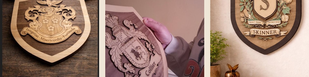 Engraved Family Crest Wood Plaque | Custom Coat of Arms Shield, Rustic Heritage Wall Decor