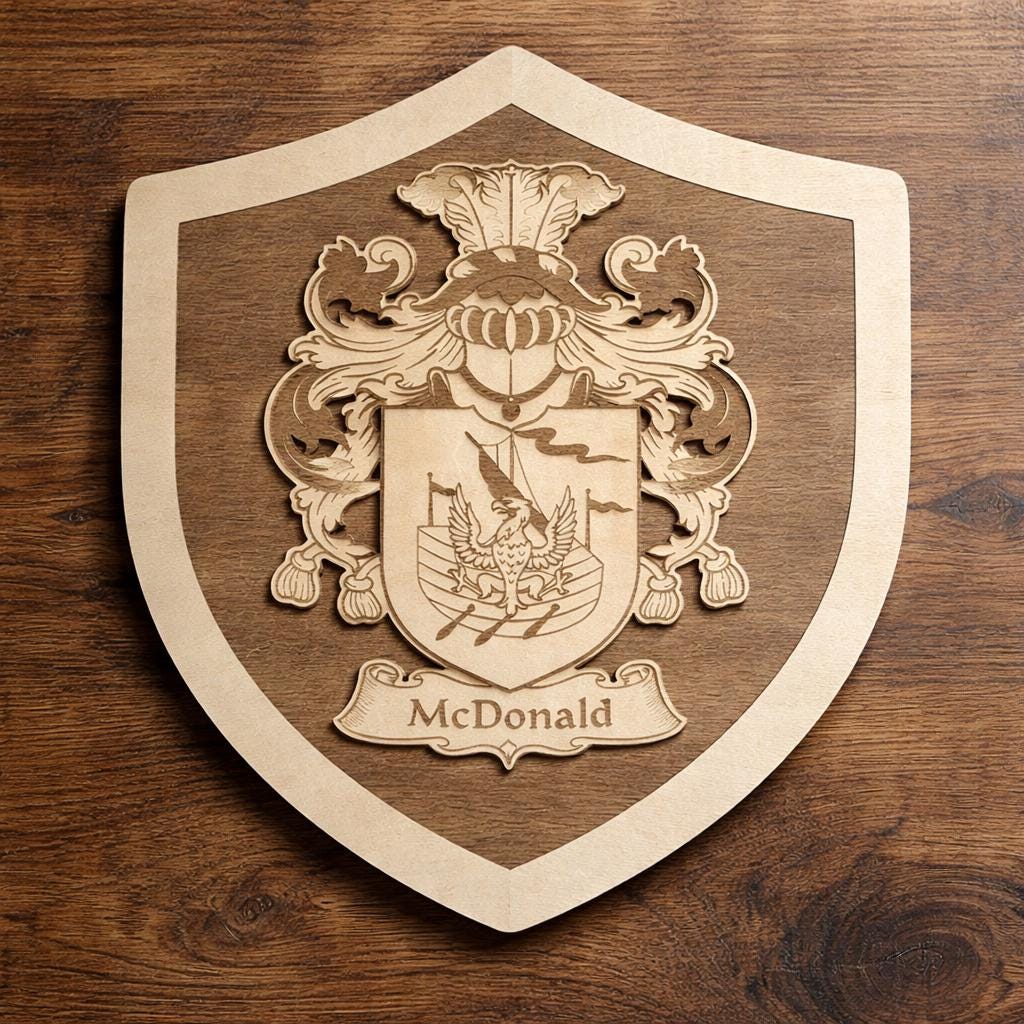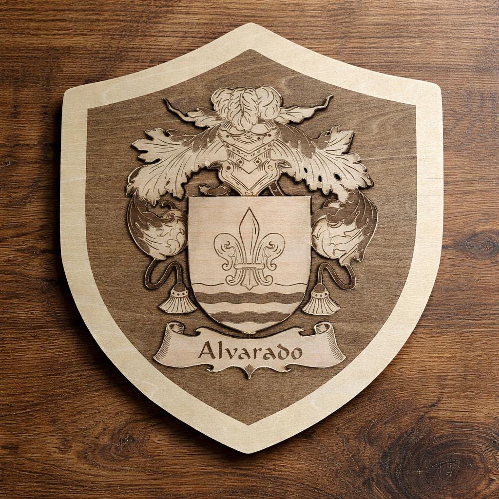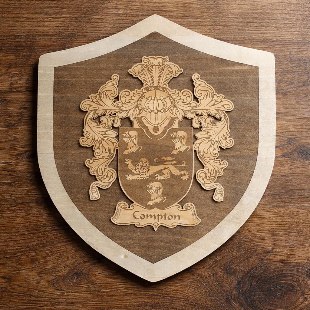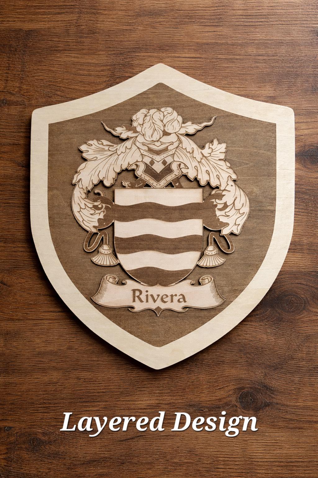 Each piece is a layered shield plaque, precision-engraved in basswood to highlight your ancestry, family identity, or brand. Designed as timeless heraldry wall art, these plaques make meaningful heirlooms for homes, offices, or thoughtful gifts.