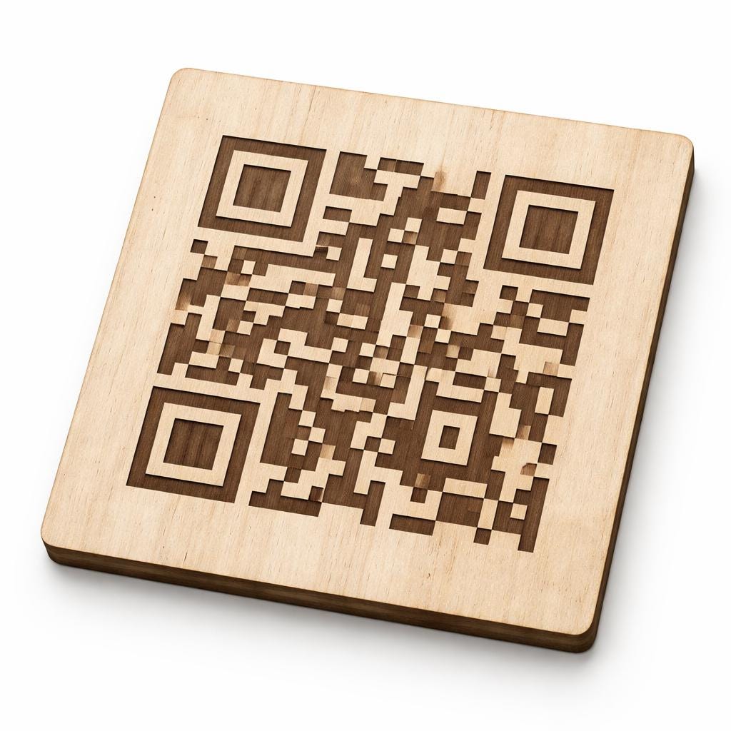 A custom QR code is generated and permanently engraved into the token.