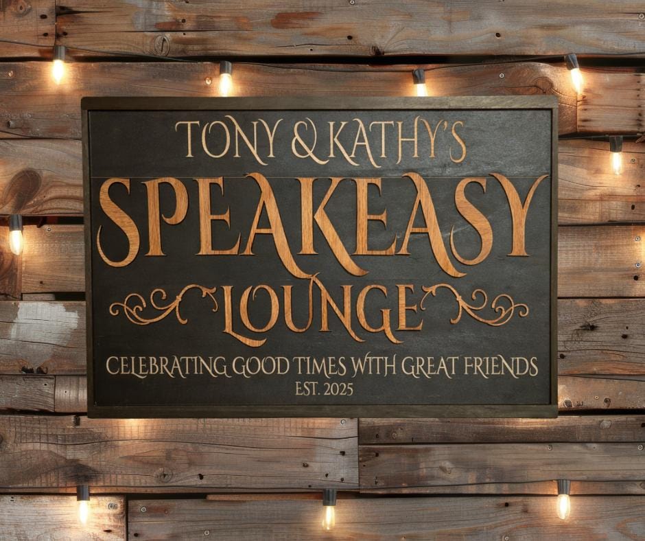 Bring old-world charm and quiet indulgence into your space with this personalized Speakeasy Lounge sign, crafted to feel like it belongs behind a hidden door and shared only with those in the know.