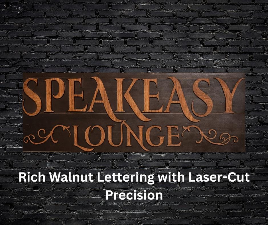 This piece features a layered wood construction, painted in a rich matte black, with raised walnut lettering for depth, contrast, and timeless character. Designed for home bars, lounges, dens, or gifting, it blends vintage speakeasy aesthetics with modern craftsmanship.