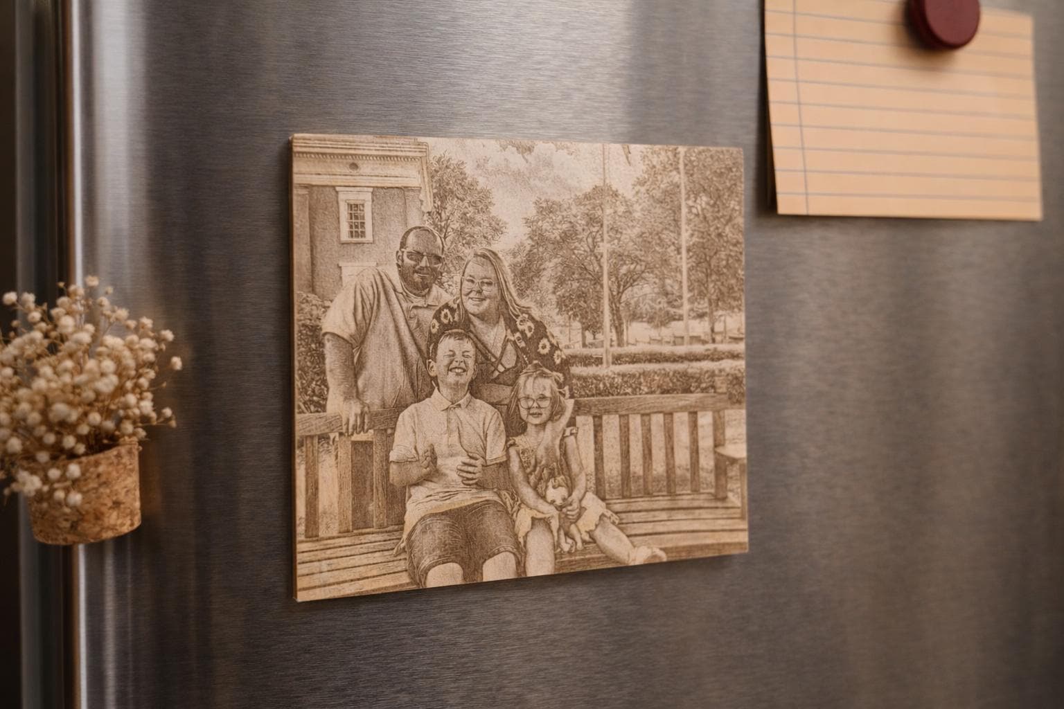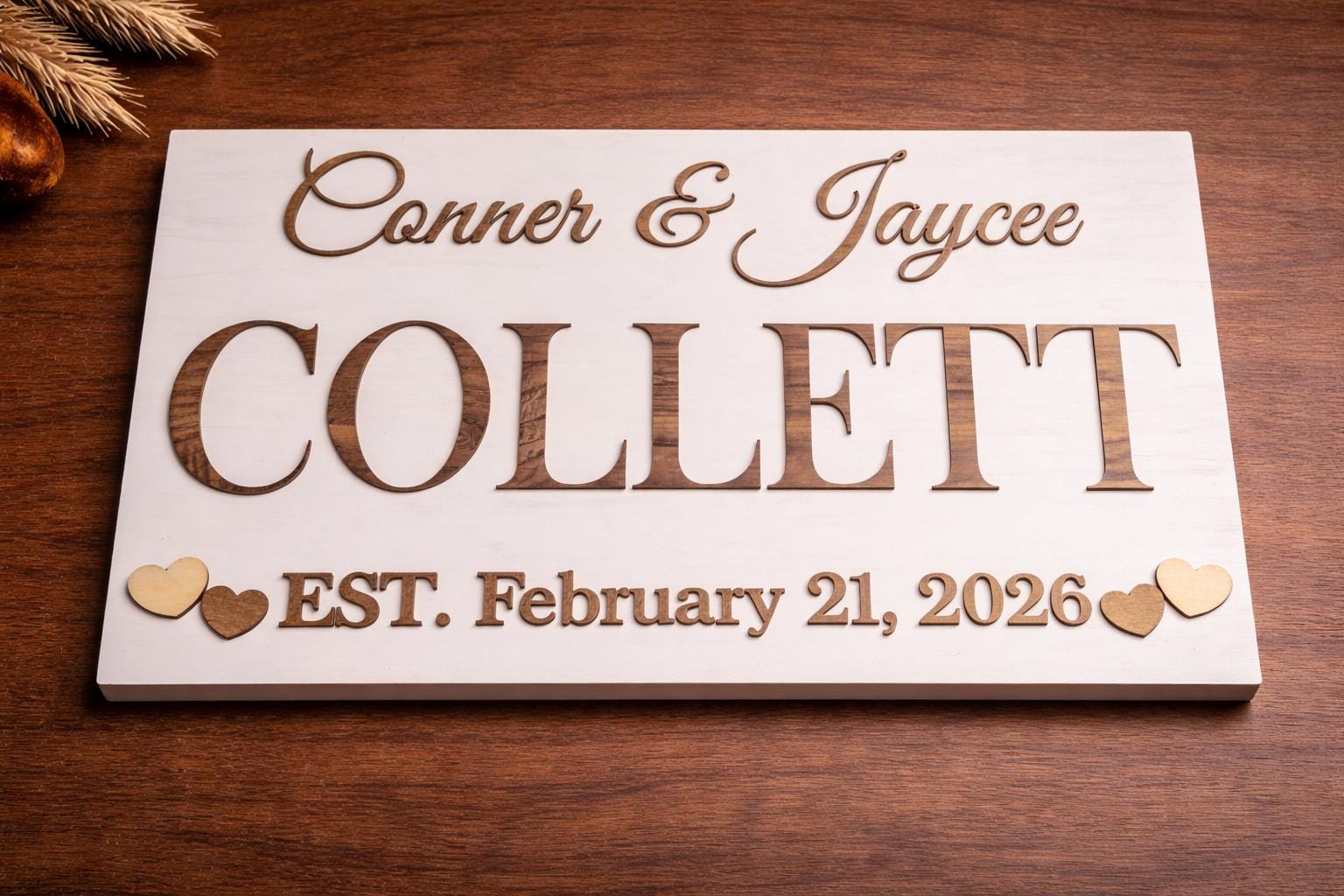 • Material preference (wood, slate, metal, acrylic — no transparent, leather, or a mixture of these)